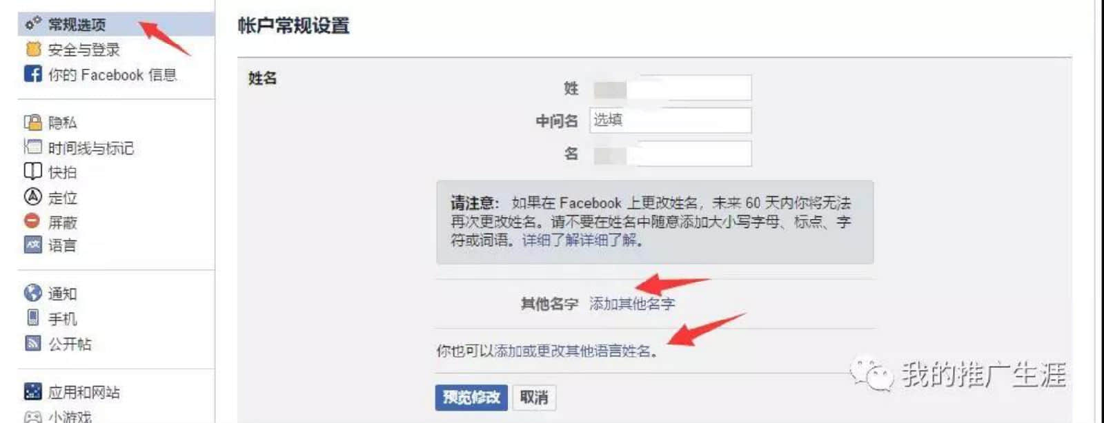 很多人想著跟老外聯系要有個英文名稱,那么你可以在“設置”,“常規選項”,添加其他名字或者添加其他語言名字。