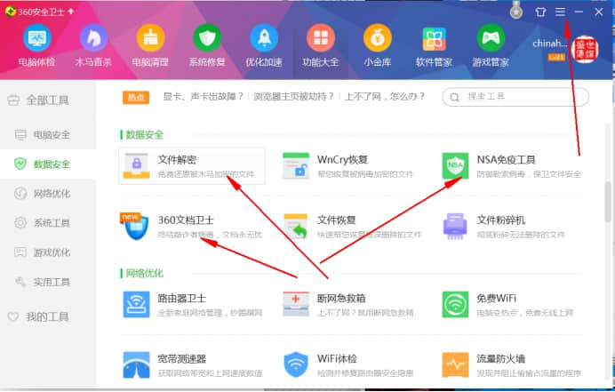 3. 點擊功能大全,,選擇數(shù)據(jù)安全,選擇右側(cè)NSA免疫工具.