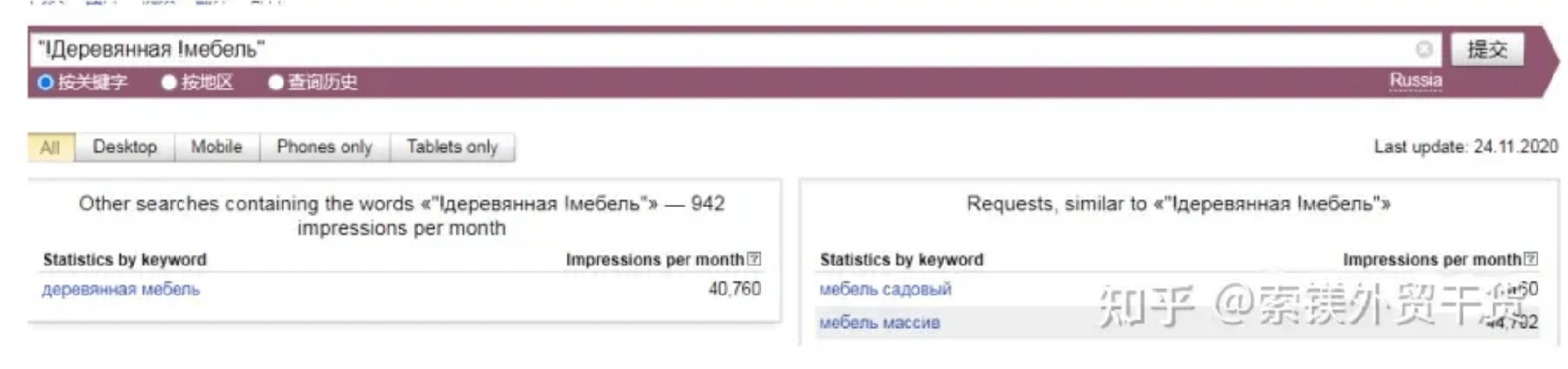 如木質(zhì)家具在莫斯科,需要在介詞“在”的前面加上“+”,才能得出準(zhǔn)確的搜索需求。